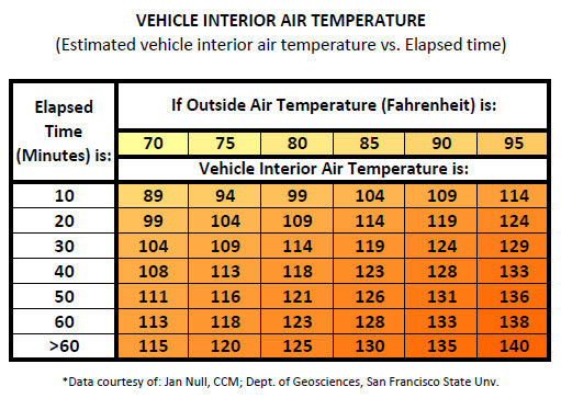 The hot summer months are upon us, and so are the dangers of leaving people and pets inside your vehicle for “just a minute.” During warm weather, vehicle interior temperatures take only a few minutes to rise to dangerous levels, resulting in a serious health risk or even death.